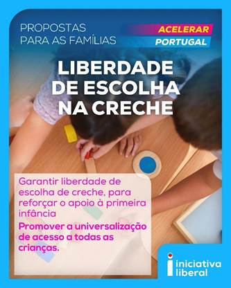 A Iniciativa Liberal (IL) está focada em “dar liberdade às famílias para escolherem as escolas que melhor servem os seus filhos, promovendo diversidade e inovação no sistema educativo”, tal como defende um modelo em que todas as creches licenciadas, independentemente da sua natureza, possam ser escolhidas pelas famílias.