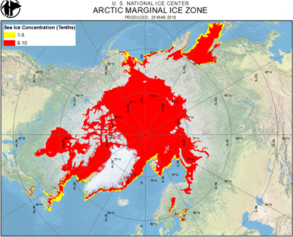 De acordo com o Centro Nacional de Dados sobre Neve e Gelo (NSIDC) dos EUA, o gelo marinho do Ártico, que começou, em 1978, a ser monitorizado por satélites, vem recuando nas últimas décadas (mais de 12%, em cada década, 80 mil quilómetros quadrados, por ano). A 22 de março, findo o inverno, período de maior acumulação, terá sido atingida a extensão máxima para 2026, isto é, 14,33 milhões de quilómetros quadrados – “o pico mais baixo, desde que há registos”, o que se verifica pelo segundo ano consecutivo.