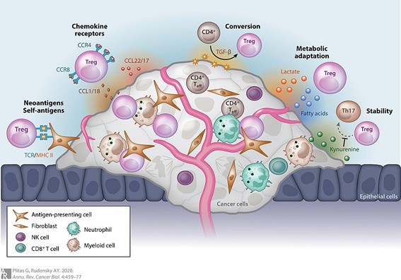 - Cancro: o mecanismo também é crucial na imunoterapia do cancro. Para combater tumores, o objetivo é o oposto: reduzir ou destruir as células Treg que, ao manter o sistema imunitário sob controlo, podem inadvertidamente proteger as células cancerosas de serem atacadas.