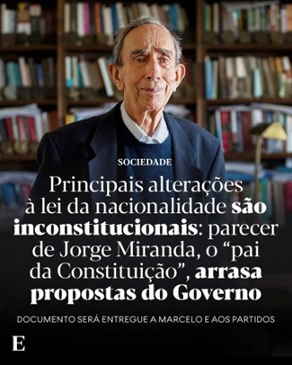 Porém, o parecer de Jorge Miranda sustenta que as medidas ainda não estão em vigor, pelo que a pretensão do executivo “viola, frontalmente, a proibição de aplicação retroativa” de leis que restringem direitos, liberdades e garantias, além de representar uma “menorização incompreensível do Parlamento”, que ainda poderá introduzir alterações significativas no diploma. Por outro lado, “apesar de o governo considerar que a atual Lei da Nacionalidade contém medidas erradas, isso não as revoga”, frisa o documento, igualmente assinado pelo advogado Rui Tavares Lanceiro, especialista em Direito Administrativo e Constitucional.