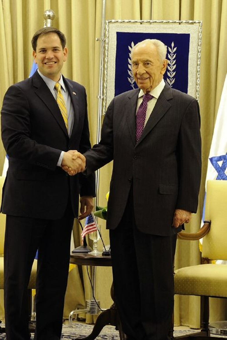mês de fevereiro de 2013) com o então Presidente de Israel, Shimon