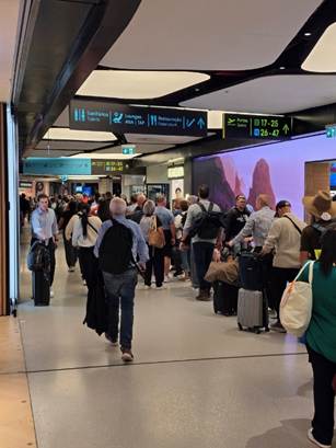 A articulista regista o caso de um passageiro que, para um voo com destino a Miami, esperou quase duas horas para o controlo do passaporte. Tendo chegado, com a família, às 7h30 do dia 14 ao AHD, entraram às 9h30 na zona internacional de embarque, para apanharem o voo das 10h30. “Recomendam-nos vir com três horas de antecedência. Neste momento, o aeroporto não consegue processar as pessoas em três horas, principalmente, se não forem cidadãos da União Europeia”, explicou. As filas são longas, até para distinguir passageiros comunitários e extracomunitários: “O caos está instalado dos dois lados. Não se consegue chegar à divisão das filas”, lamentou.
