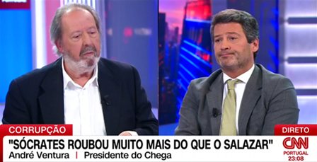 Foi confrangedor ouvir José Pacheco Pereira, em vários instantes, dizer a André Ventura: “Homem, ouça!” Uma vez que a “matraca falante” não o deixava exprimir uma ideia sem ser interrompido! Mas conseguiu, contudo, dizer-lhe o mais importante: “Sabe qual é o problema? É uma mistura de ignorância e demagogia, que é o que você está a fazer … Eu vou-lhe dizer porquê. Em primeiro lugar, a revolução miserável de que está a falar, que é o 25 de Abril, essa revolução miserável deu a liberdade a Portugal, deu a liberdade para você dizer o que diz, deu a liberdade e deu a democracia para poder estar no Parlamento.”