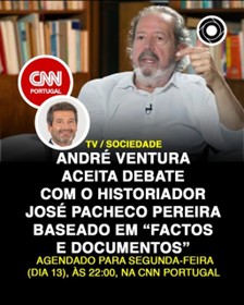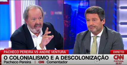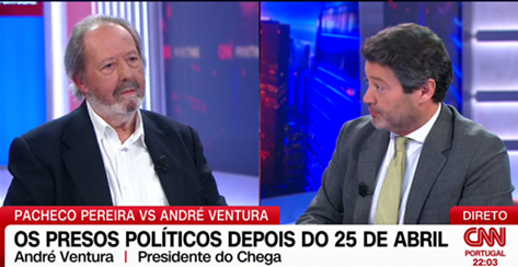 Faço parte do grupo de portugueses e de portuguesas que viram na televisão, na anterior segunda-feira, 13 de Abril, o debate entre o historiador e ex-deputado José Pacheco Pereira (JPP) e o presidente do partido Chega, André Ventura (AV), promovido pela CNN Portugal.