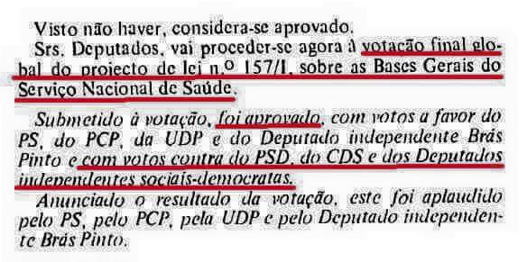 Tal como em 1979, os social-democratas contam agora com o apoio do Partido Popular (CDS-PP), tradicionalmente conhecido por Centro Democrático Social (CDS), que então também votou contra a bizarria de o SNS cuidar de todos os cidadãos. Sem se importar com a guita que cada um tinha ou não na sua algibeira.